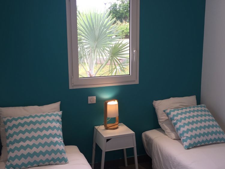 1 chambre turquoise, un lit double 160*200 ou deux lits simples 80*200 avec climatisation